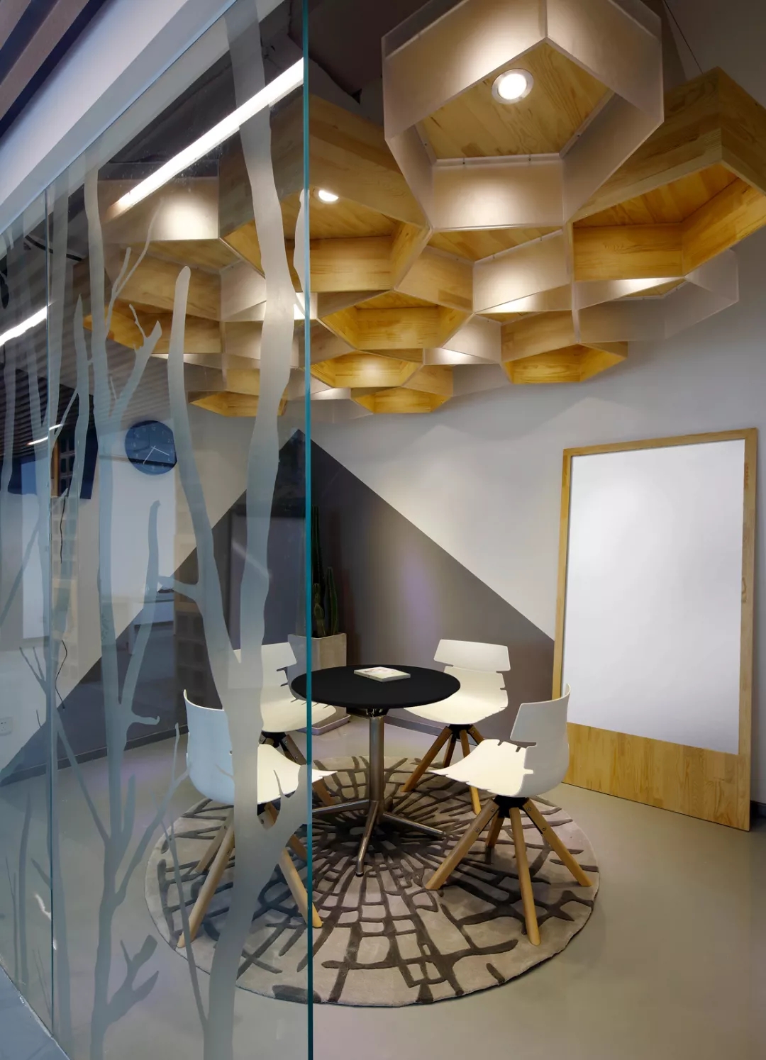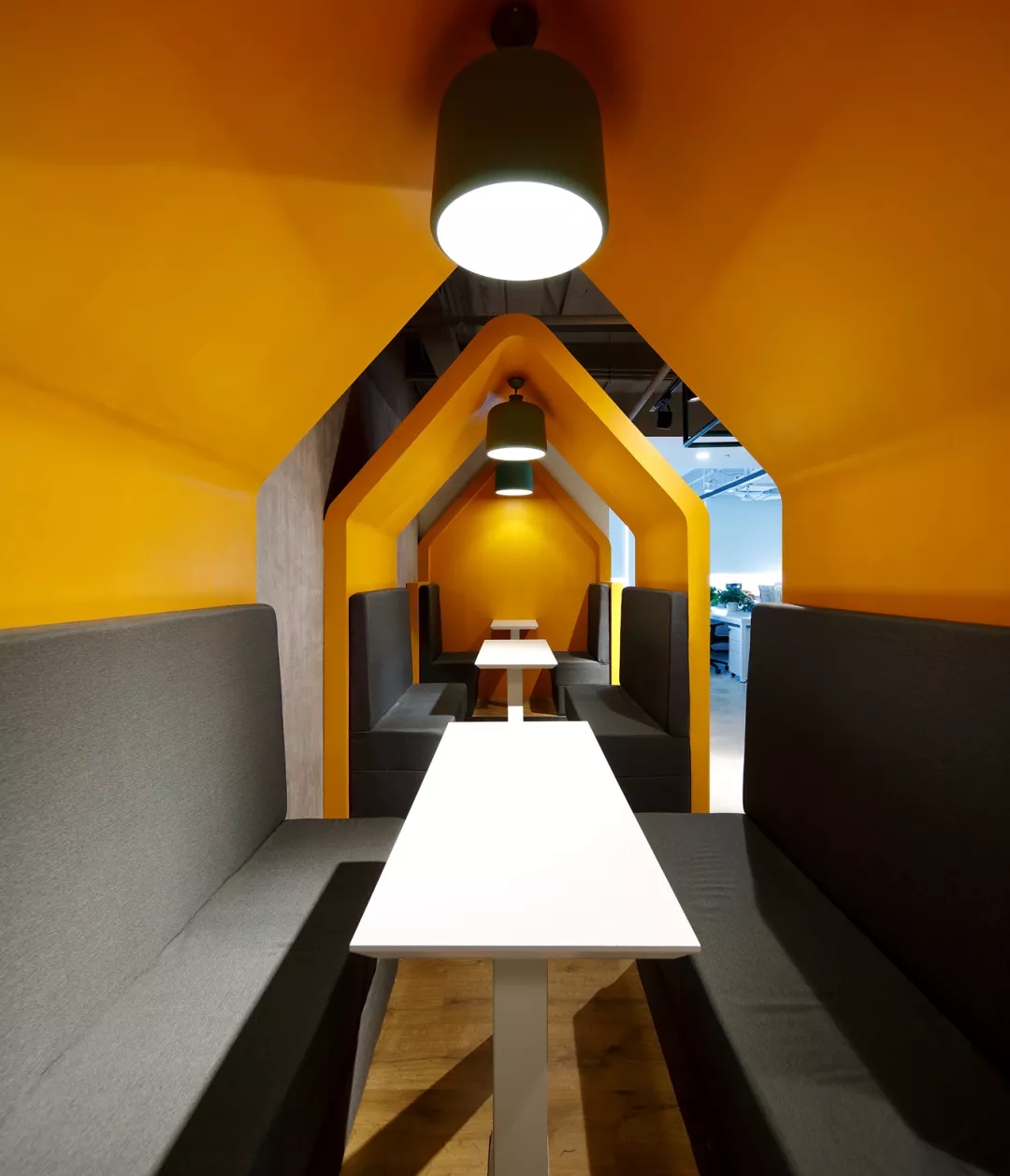 最新完成的整層辦公區(qū)延續(xù)了主體風(fēng)格,少了花俏的點(diǎn)綴,更多地使用色彩碰撞來提振精神,比如亮橙色開放會(huì)議間與品牌VI的臟灰色搭配。也首次嘗試了全白色調(diào)的通透會(huì)議室,算是對(duì)極致風(fēng)格的小探索。